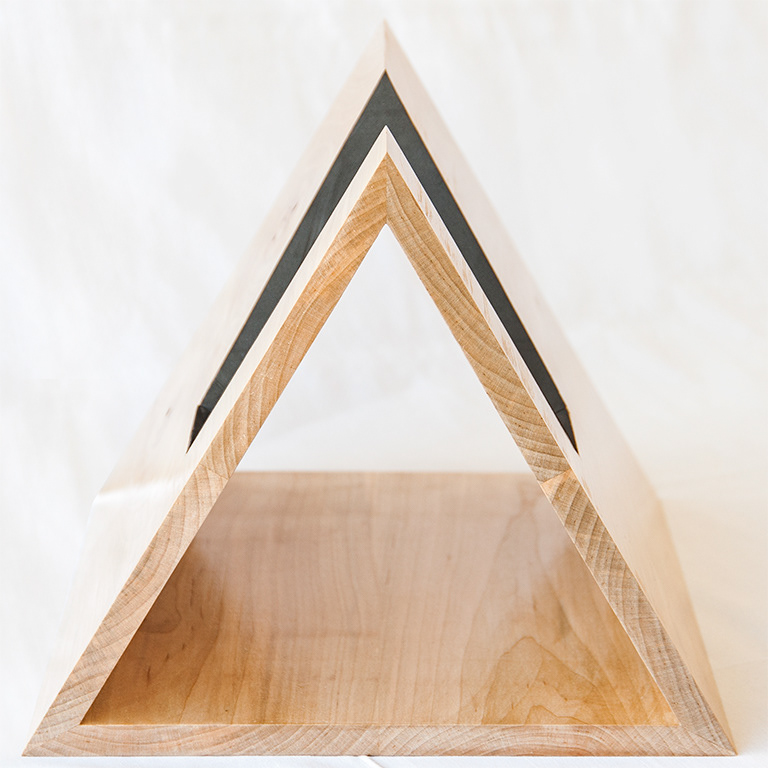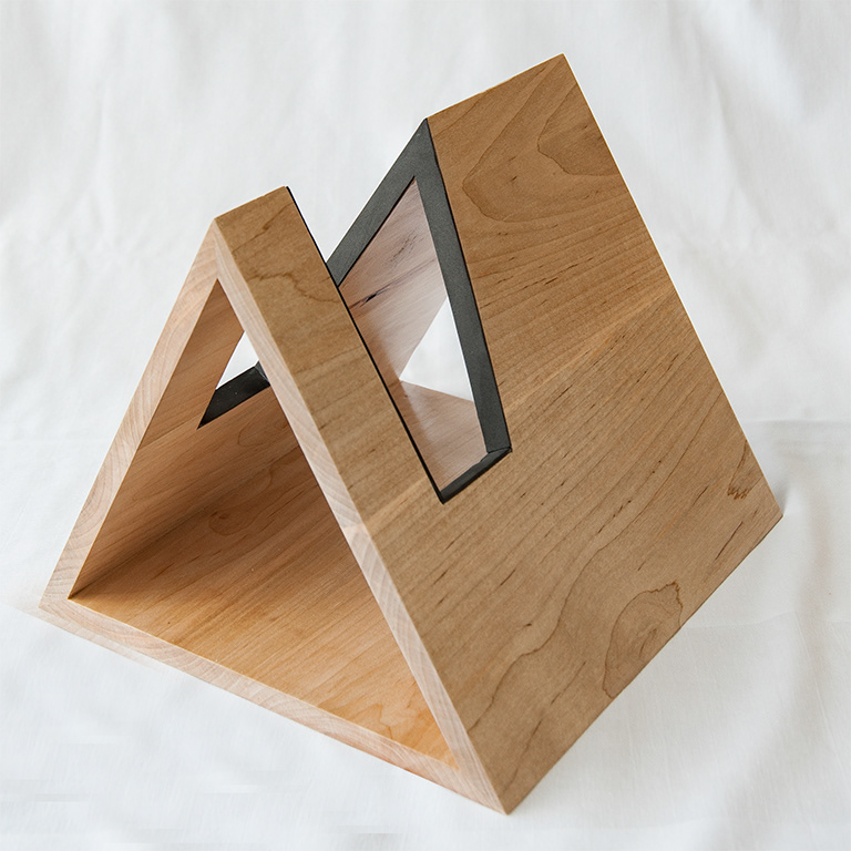 This was made as a gift to a family member interested in music. The simple form is constructed from hard maple and finished with a lacquer to protect the surface. To protect the instrument from damage, the interior is lined with foam.